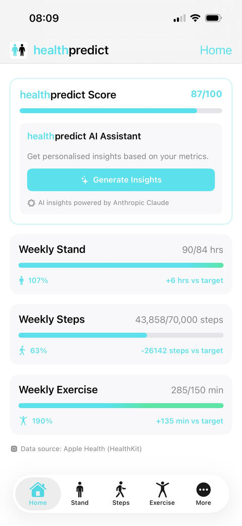 HEALTHpredict helps you understand your health like never before. Track key wellbeing metrics and see exactly how you measure up against national health guidelines. No more guessing if you're on track. Get personalised insights, spot trends before they become problems, and make informed decisions backed by real data.