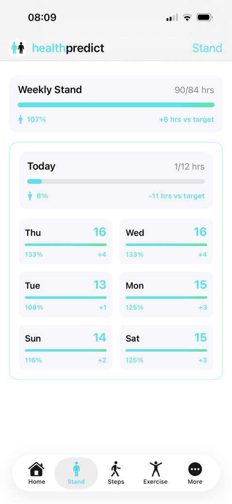 See a more detailed weekly breakdown of how your stand hours compare to the WHO/NHS health recommendations