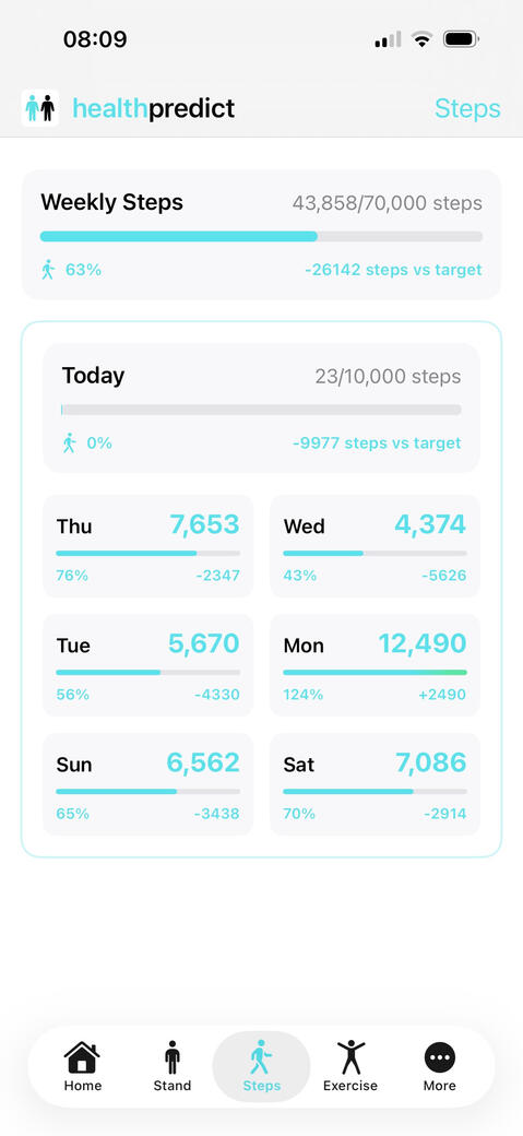 See a more detailed weekly breakdown of how your steps compare to the WHO/NHS health recommendations